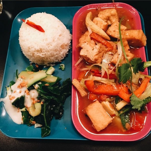 Comments: There is a full vegan menu of very tasty Thai starters, mains and sides. It is available to eat in and takeaway in the evening. At lunchtime it is available to takeaway but only one vegan main and one vegan side are on the eat in menu. The mains include noodle, mushroom & rice, crispy tofu and pumpkin, tofu and jackfruit curry dishes.