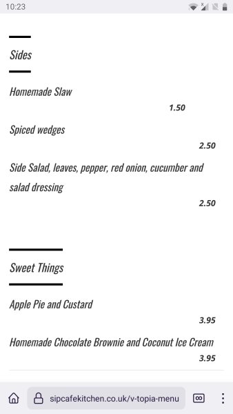 Comments: They have vegan options of vegan sausage sandwich or bap, baked potato with cheese & beans, falafel & cheese panini, vegetarian breakfast that comes with vegan sausage so can be adapted to vegan, vegan brunch and dairy alternative milks for drinks.