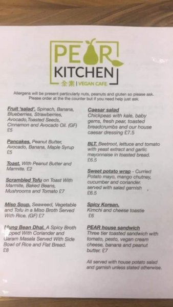 Comments: They have two sorts of vegan cake and soya milk available for coffees etc. They do charge extra for the soya milk.
