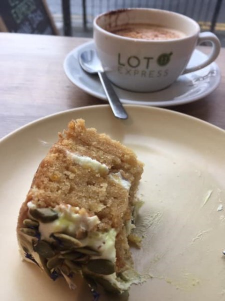 Comments: The suitable food options are vegan cheese toasties, toast/crumpets with dairy free butter and two cakes. One of the cakes is a super dark chocolate brownie. Coconut, oat & soya milk alternatives are available for drinks.