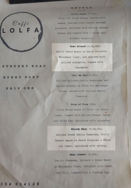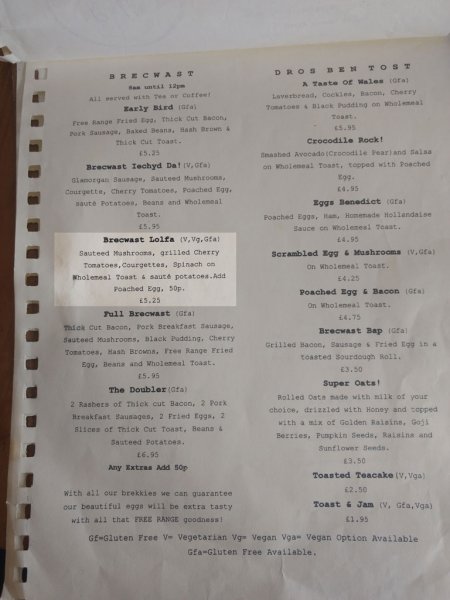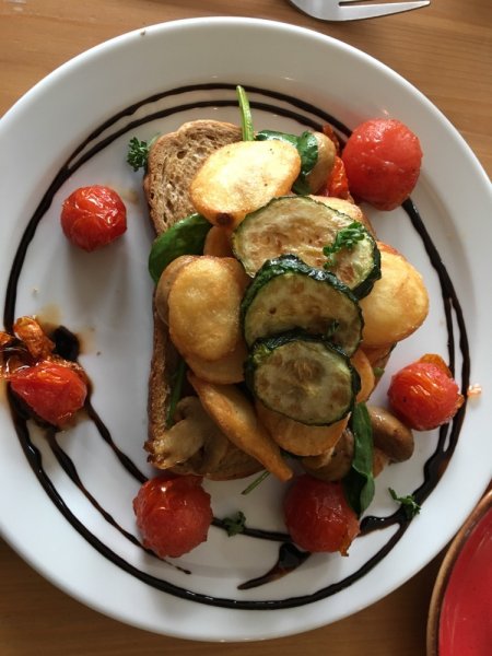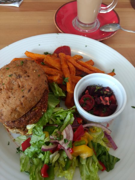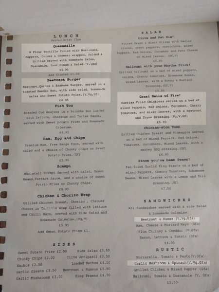 Comments: There are labelled vegan and vegan option available dishes on the lunch menu served from noon. These are quesadilla, beetroot burger, salad, butternut bhaji, beetroot & hummus sandwich and garlic mushroom & spinach rustic sandwich. They also do a brunch and normally have cake and soya & oat milk.